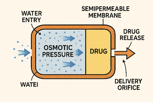 - 반투과성 막으로 둘러싸인 정제에 외부 수분이 삼투압에 의해 들어오면,